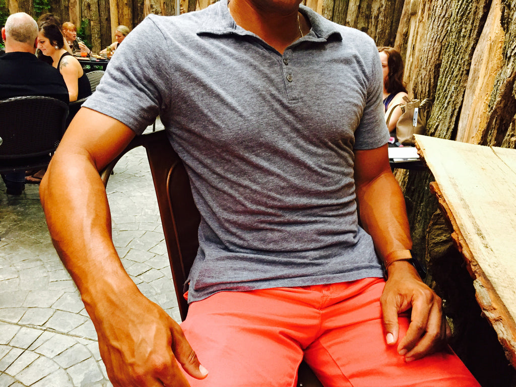 I've had it happen multiple times when I'm out at night at a nice place and notice my undershirt creeping out from under my polo shirt. It happened on my more stylish fitted polos. It bothered me the rest of the night. I want people to notice the nice clothes I have on. Not my undershirt flowing off my arm. This can happen to anyone. Here is a guy in a bar with a nice shirt on. And a long sleeved undershirt. Not ideal.